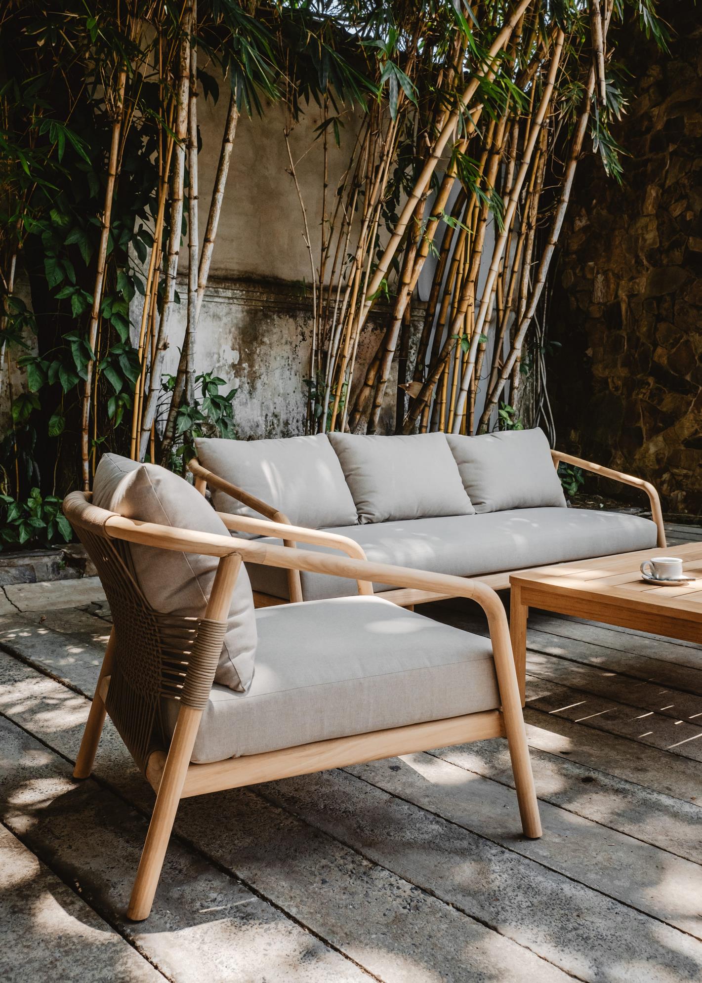 The Margo Collection blends vintage-inspired elegance with versatile design, pairing timeless comfort in lounge settings with handcrafted teak dining pieces accented by refined details.