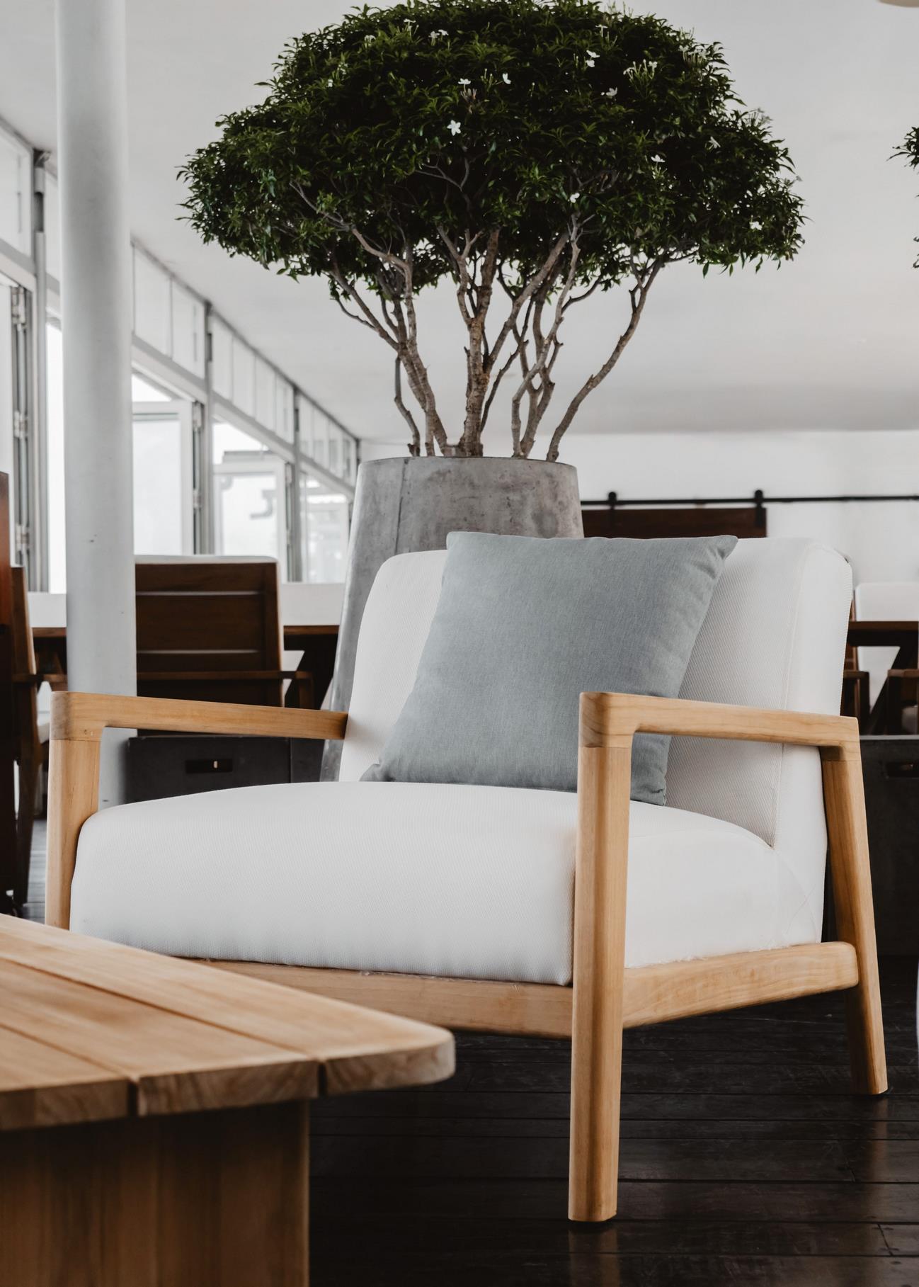 Inspired to seamlessly blend upholstery with teak frames straight lines, curved edges and tapered leg detail, offering a special vision of relaxation to outdoor spaces which prioritizes of comfort.