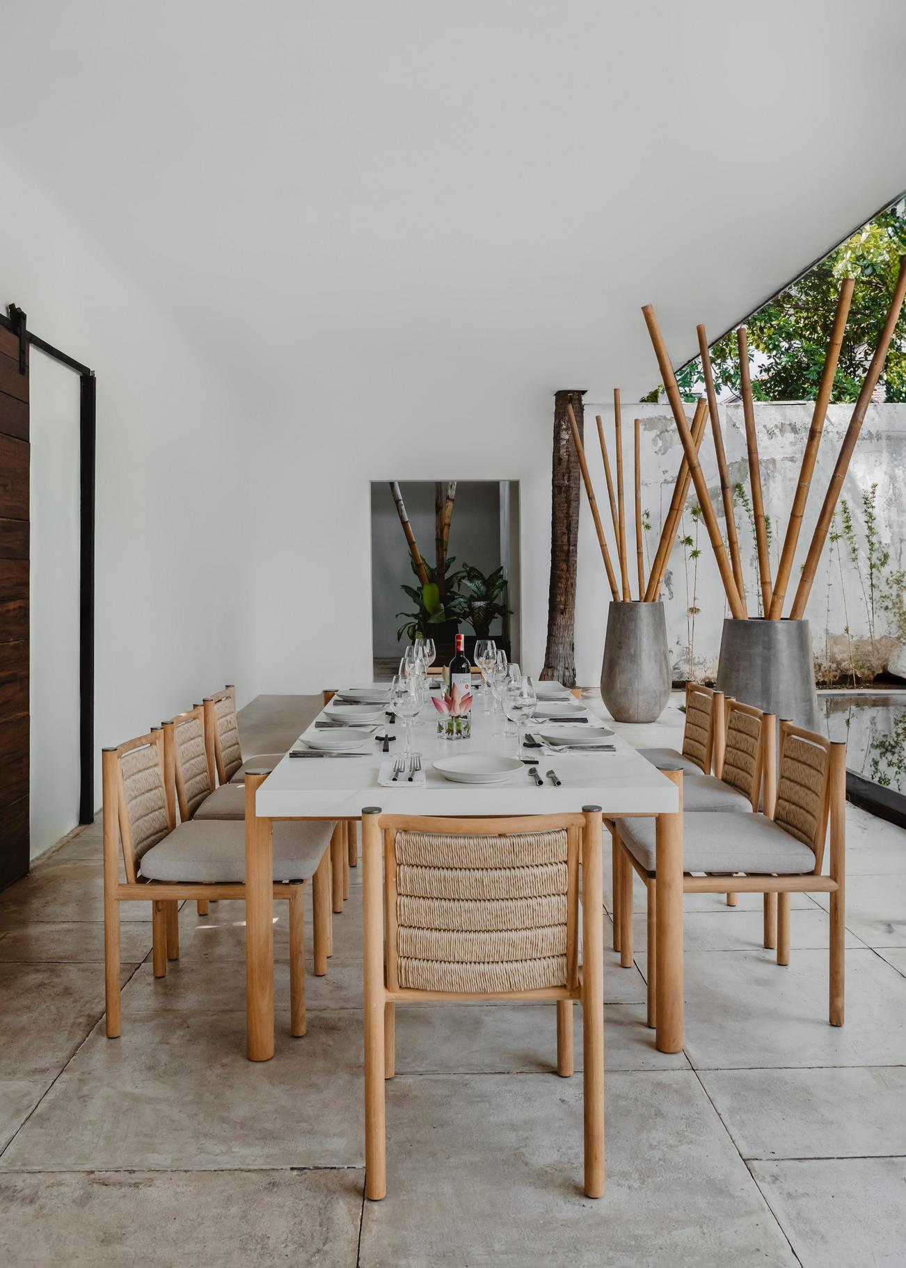 Modern materials creating a stylish silhouette for the outdoors. Inspired by antique bamboo dining chairs.